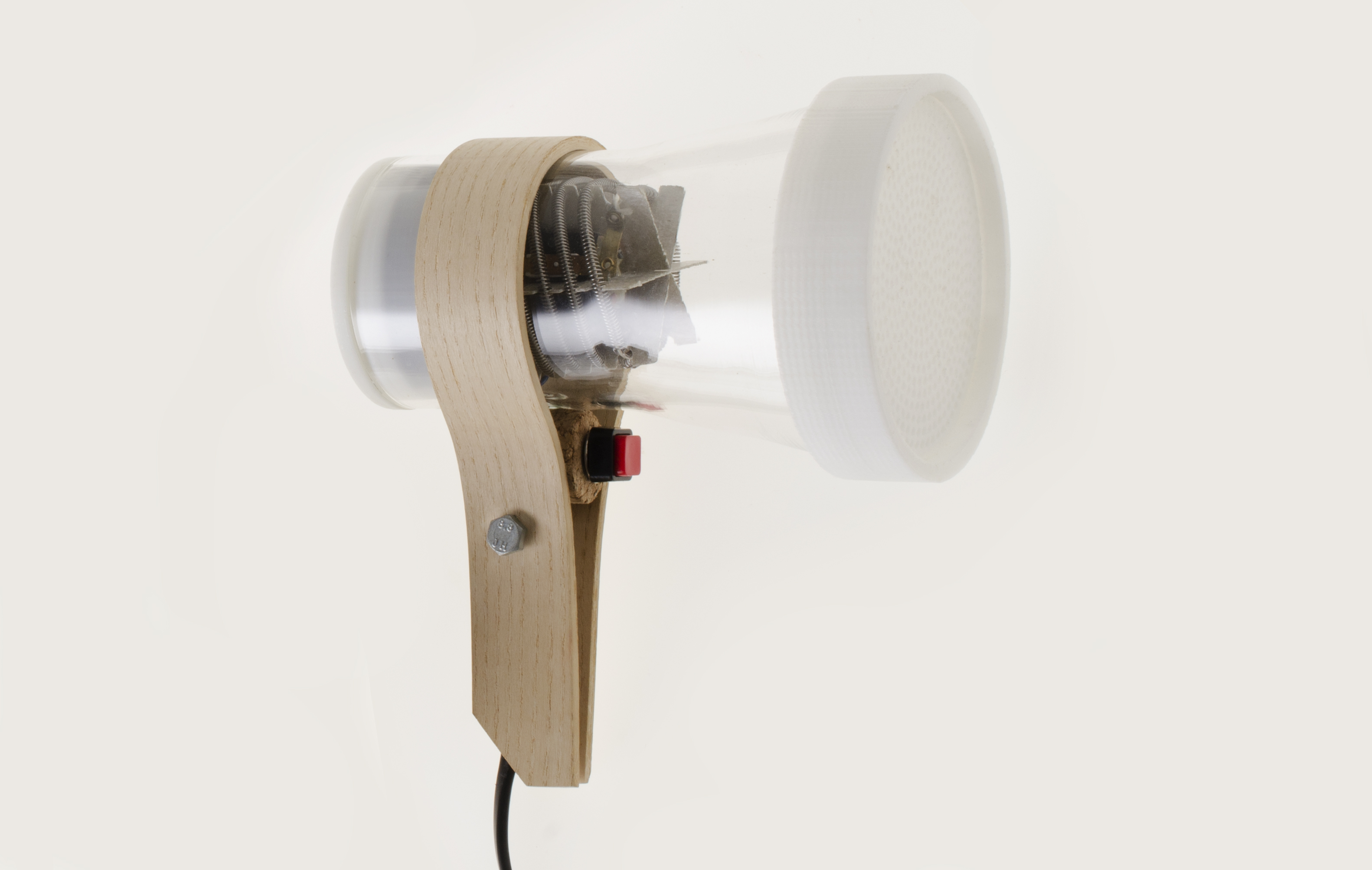 The glass part has been made by a glass worker called Giuseppe Russo, who is making the tools for the workshops of the chemistry and medicine labs of the University. The wood has been bended by Tommaso and Giorgio, the two members of Rotalab design studio. The filter has been printed by a private printer found thanks to the 3D hubs network. The hair dryer, thanks to the size of the diffuser on the front, is designed for curly hair.